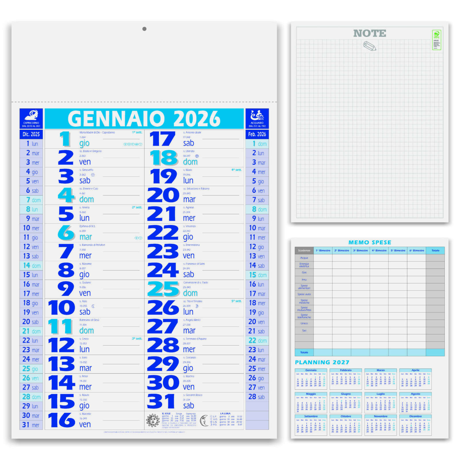 La carta patinata non solo fornisce una finitura lucida e resistente, ma rende anche immagini e testi più definiti, conferendo un tocco elegante e contemporaneo a ogni foglio. La testata termosaldata aggiunge un ulteriore elemento di qualità al prodotto, garantendo una rilegatura robusta e duratura, che mantiene il calendario in ottime condizioni per tutto l’anno.