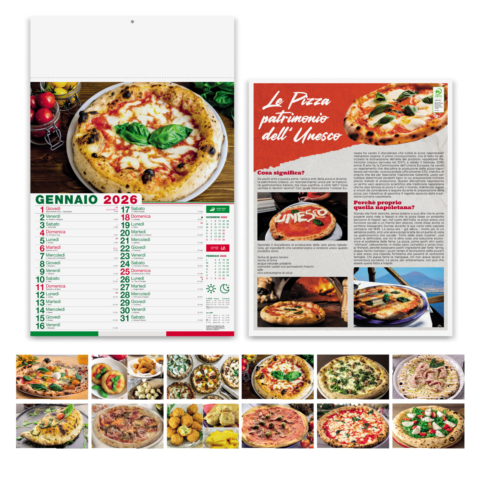Calendario personalizzato pizza: un’esplosione di gusto e creatività! Se stai cercando un calendario che sia tanto delizioso quanto esteticamente gradevole, il nostro calendario personalizzato pizza è la scelta ideale per te! Cosa lo rende unico: Illustrazioni originali: Ogni mese presenta un’illustrazione vivace e divertente dedicata alla pizza, creata appositamente per te. Ricette deliziose: Scopri nuove ricette di pizza ogni mese e diventa un vero esperto pizzaiolo! Personalizzazione totale: Scegli i tuoi colori preferiti, aggiungi il tuo logo o una dedica speciale. Qualità superiore: Carta patinata da 70 gr, stampa in quadricromia sul retro e testata termosaldata per garantire una lunga durata. Pratico e utile: 12 fogli mensili con le festività internazionali, così non dimenticherai mai un evento importante. Perché scegliere il nostro calendario: Un regalo originale: Sorprendi amici, familiari o clienti con un dono unico e pratico. Un oggetto di design: Abbellisci la tua cucina con un tocco di colore e originalità. Un modo divertente per imparare: Scopri nuovi abbinamenti di ingredienti e tecniche di cottura. Ordina subito il tuo calendario personalizzato pizza e porta un pezzo d’Italia nella tua casa!