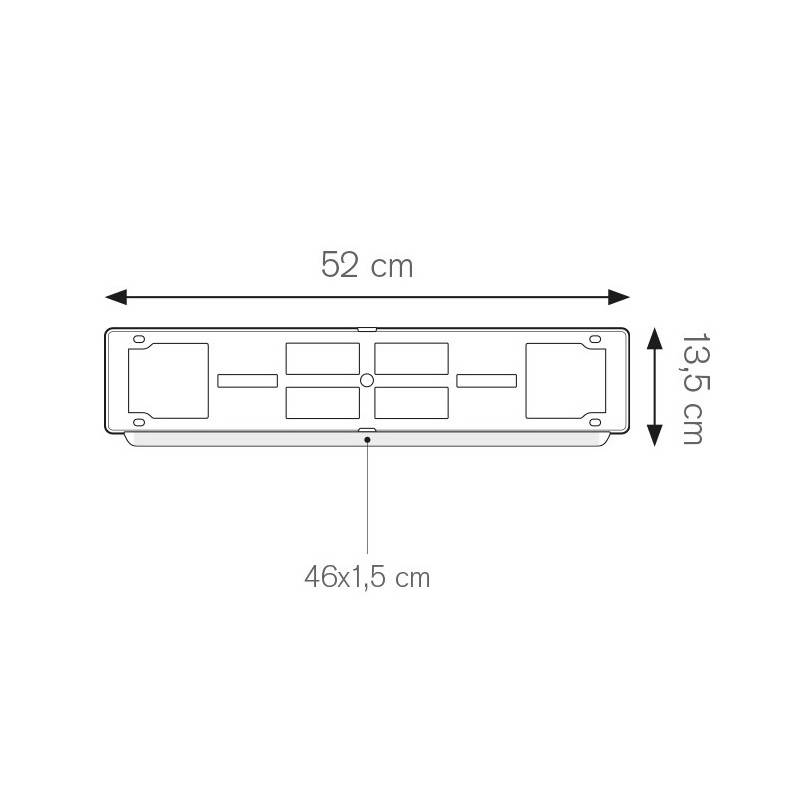portatarga posteriore auto montaggio con viti o rivetti non inclusi tecnica di stampa consigliata: serigrafica - UV cm 52x13,5 ca plastica antiurto